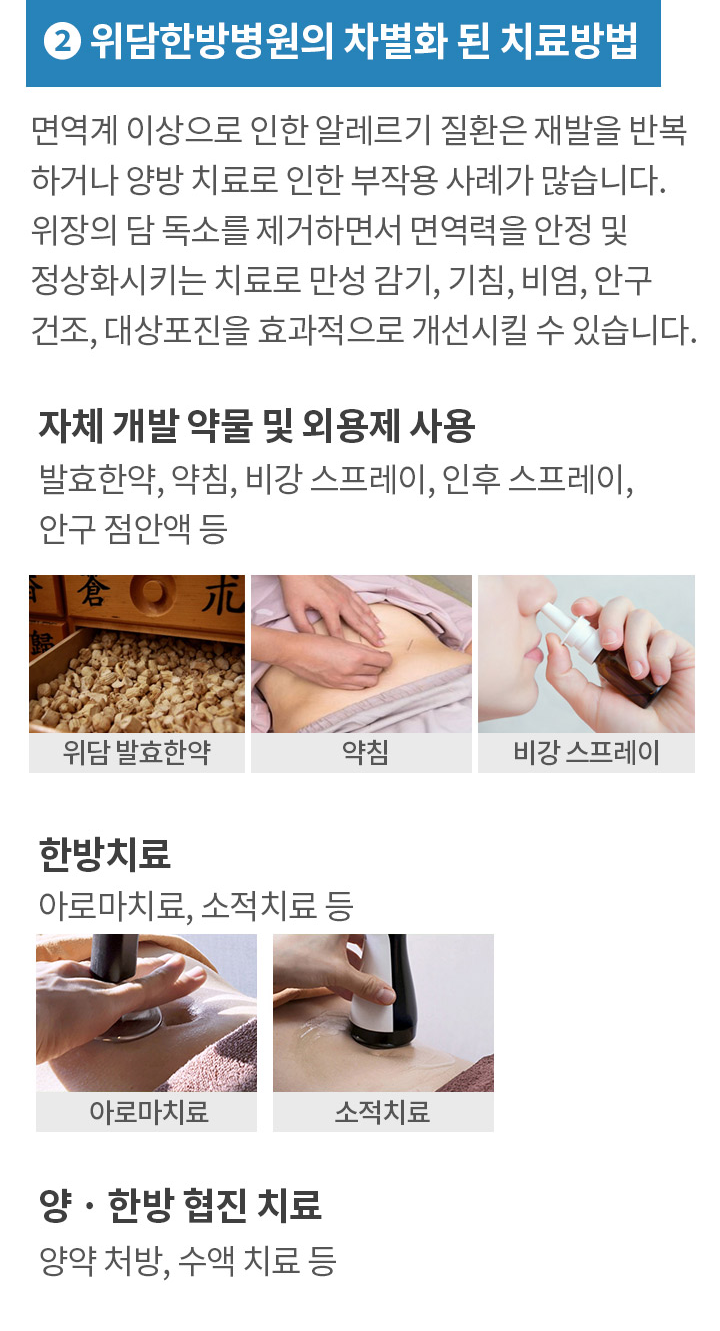 위장의 담 독소를 제거하면서 면역력을 안정 및 정상화시키는 치료로 만성 감기, 기침, 비염, 안구건조, 대상포진을 효과적으로 개선시킬 수 있습니다.